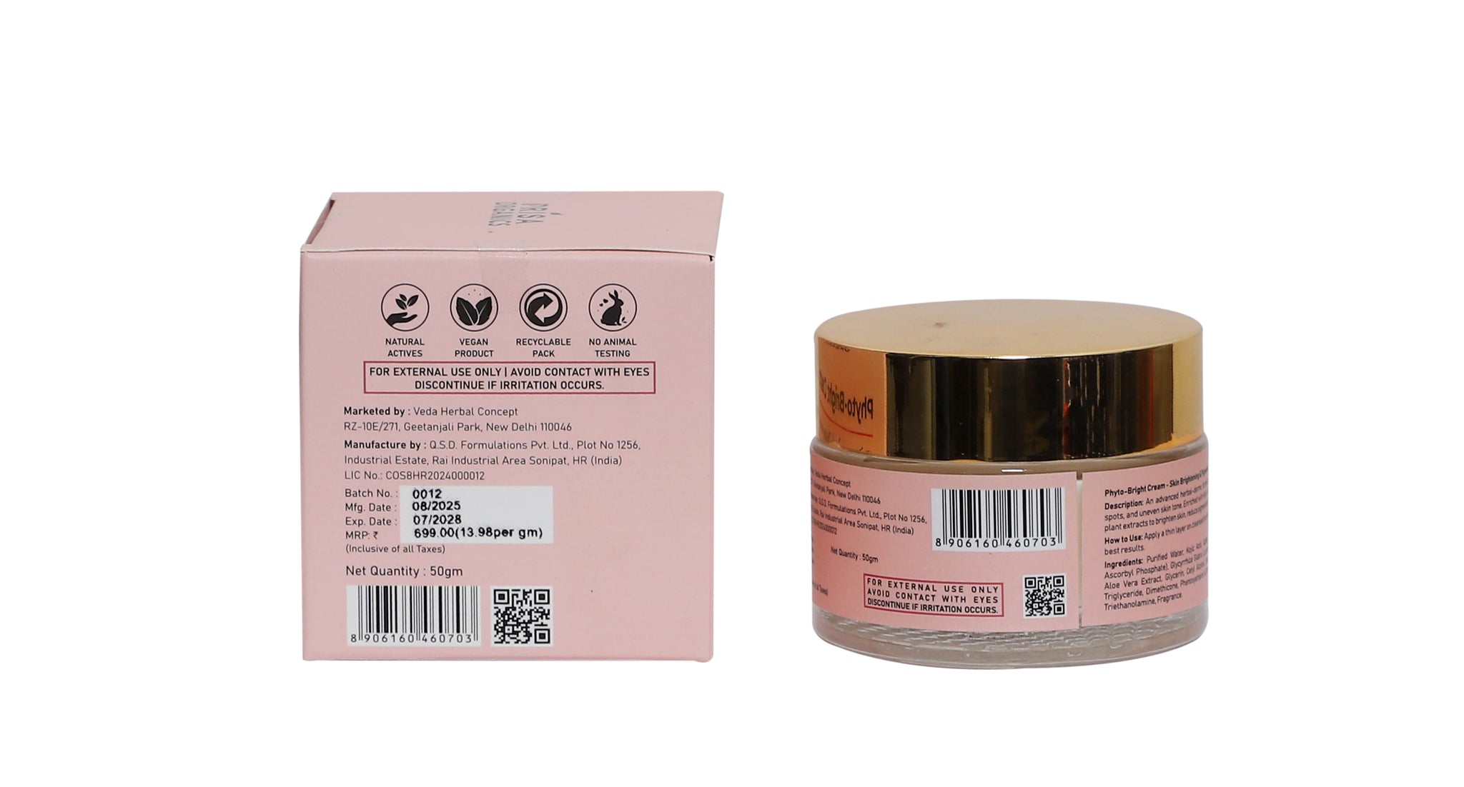 Prisa Organics Phyto Bright Face Cream 3% tranexamic Acid & 2% Alpha Arbutin Skin Brightening & Pigmentation control 50g